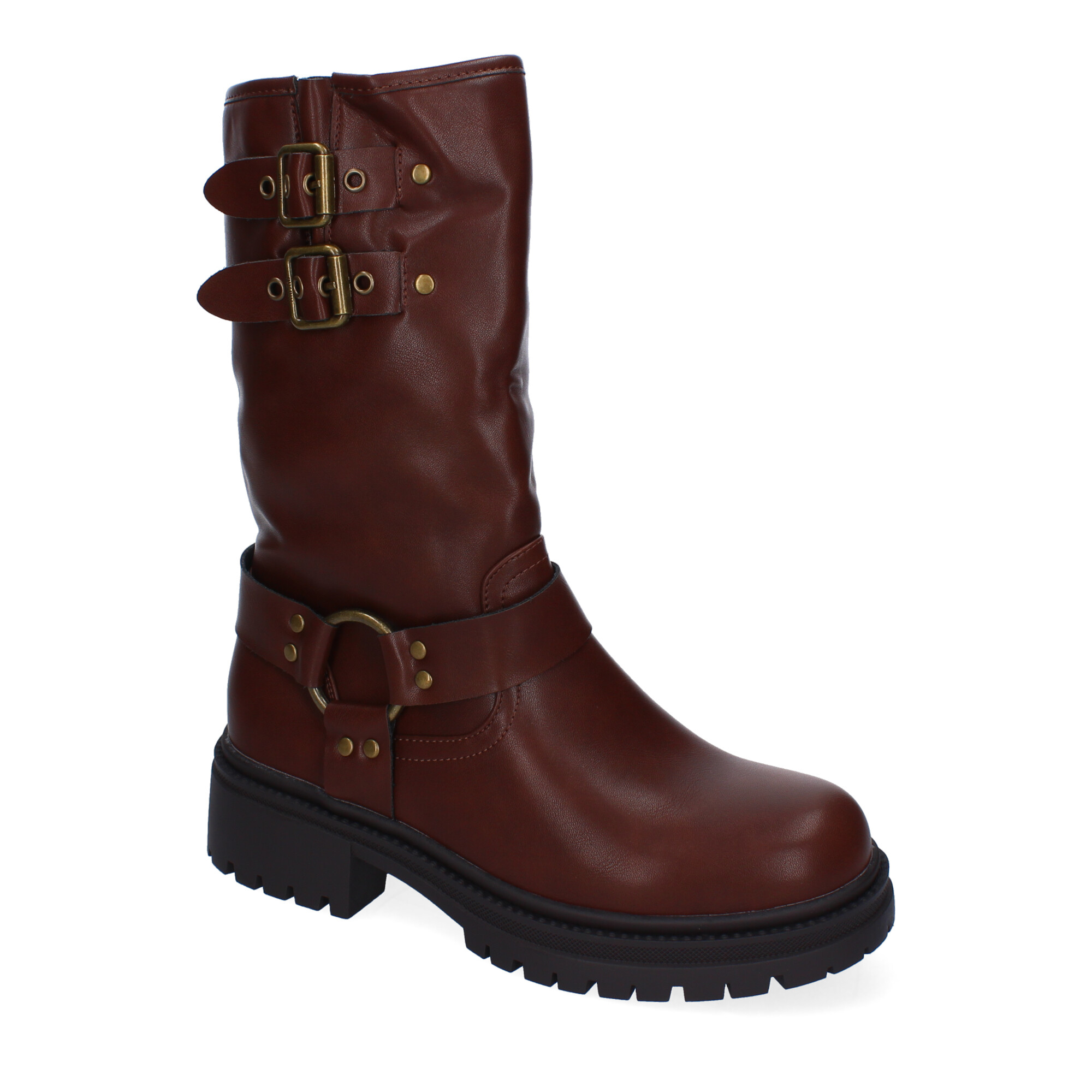 Botas de Tac?n para Mujer Estilo Motero Comodos y Elegantes Detalles de Hebillas Met?licas Ideales para Oto?o-Invierno.
