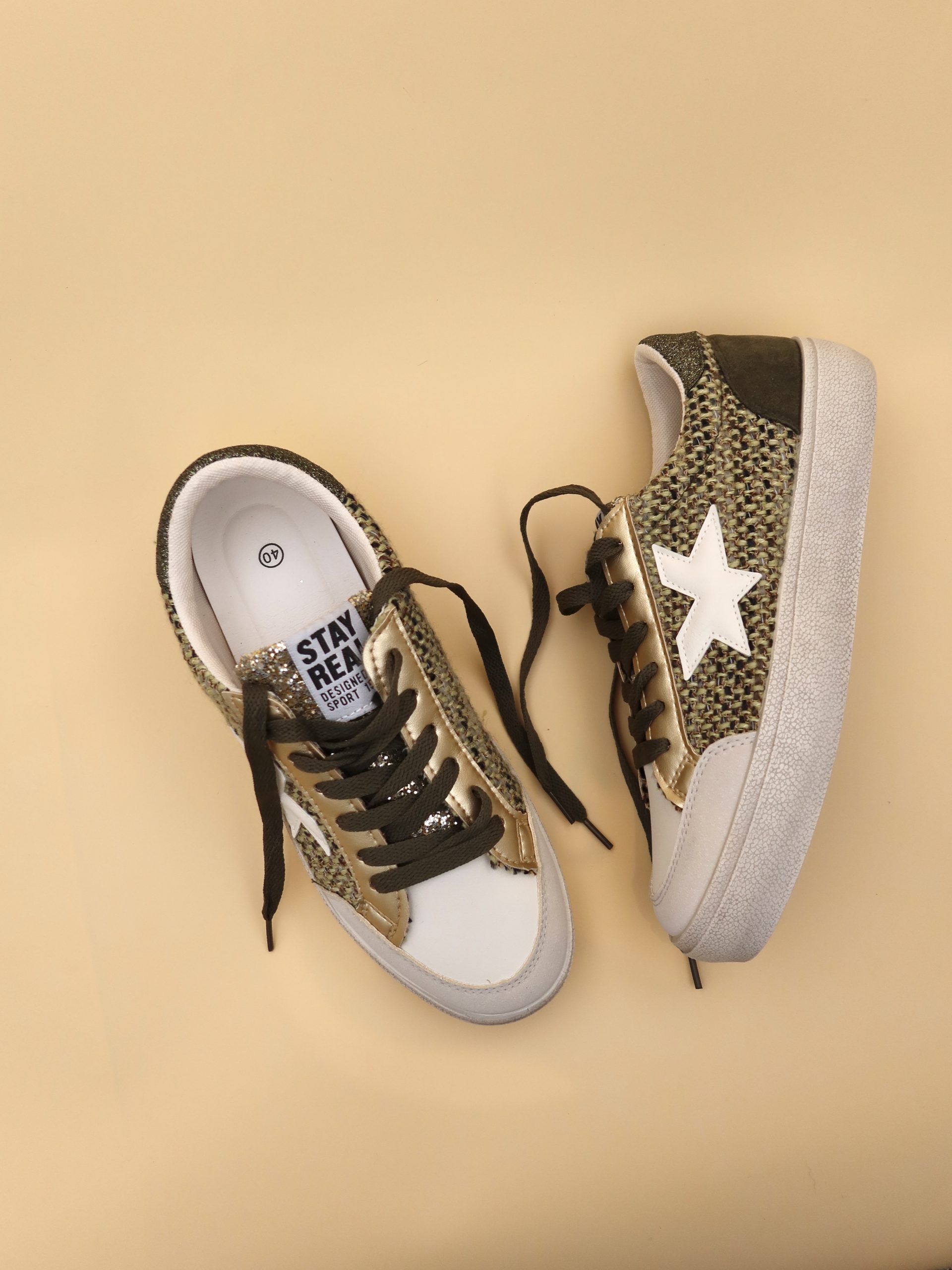 Zapatillas Casual para Mujer Cómodas con Adorno de Estrella en el lateral puntera redondeada y cierre de cordones para un ajuste perfecto.