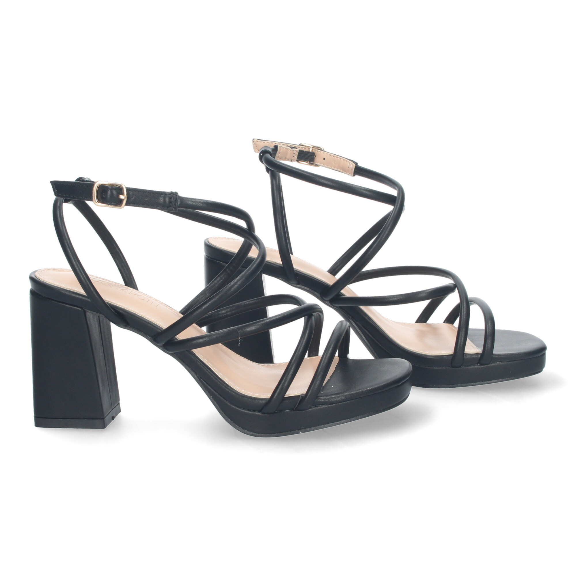 Sandalias de Mujer de fiesta con tiras entrecruzadas con brillantes tacón cuadrado metalizado y cierre de hebilla ajustable