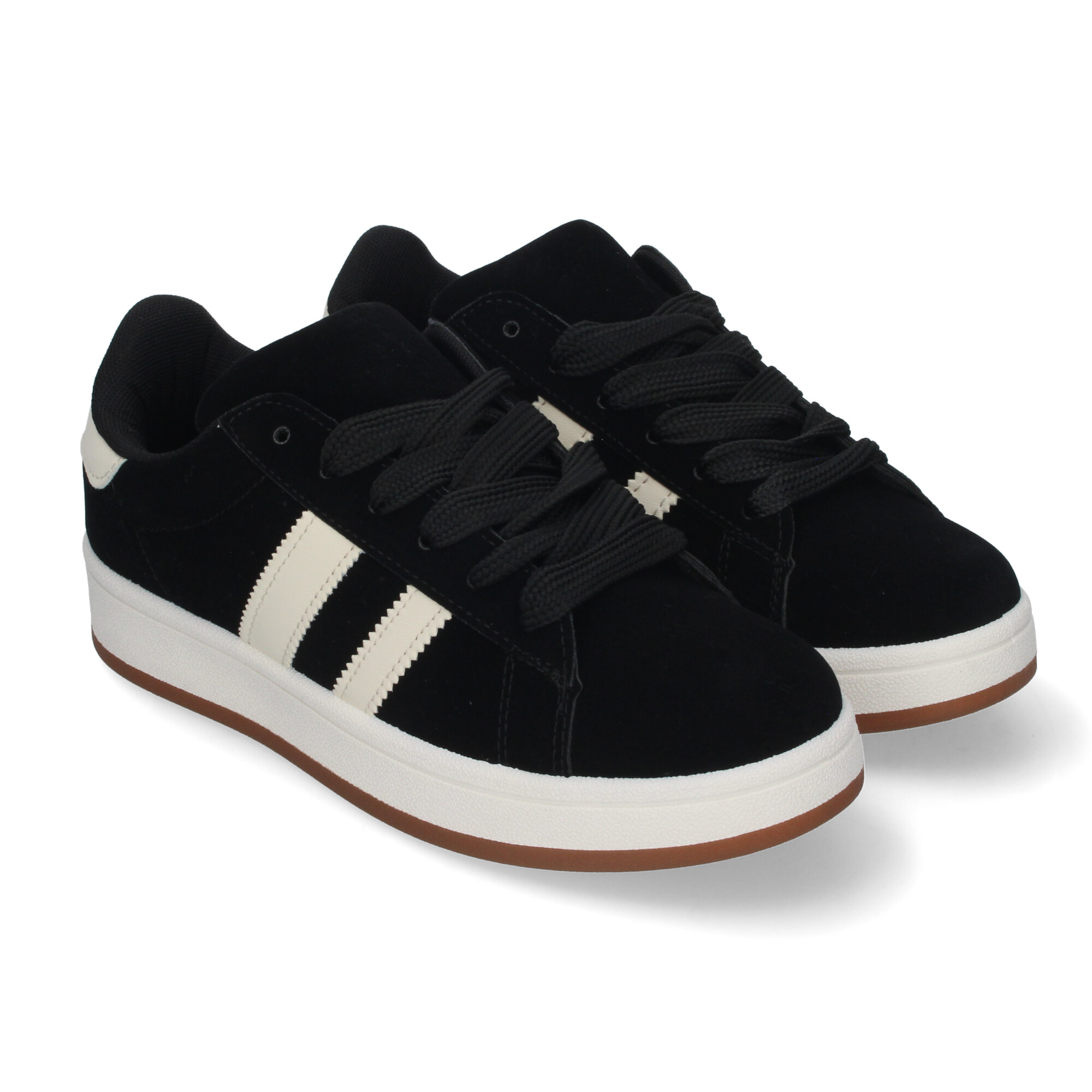 Zapatillas Deportivas Planas Estilo Casual para Mujer Cierre de Cordones y Detalle de Franjas Laterales.
