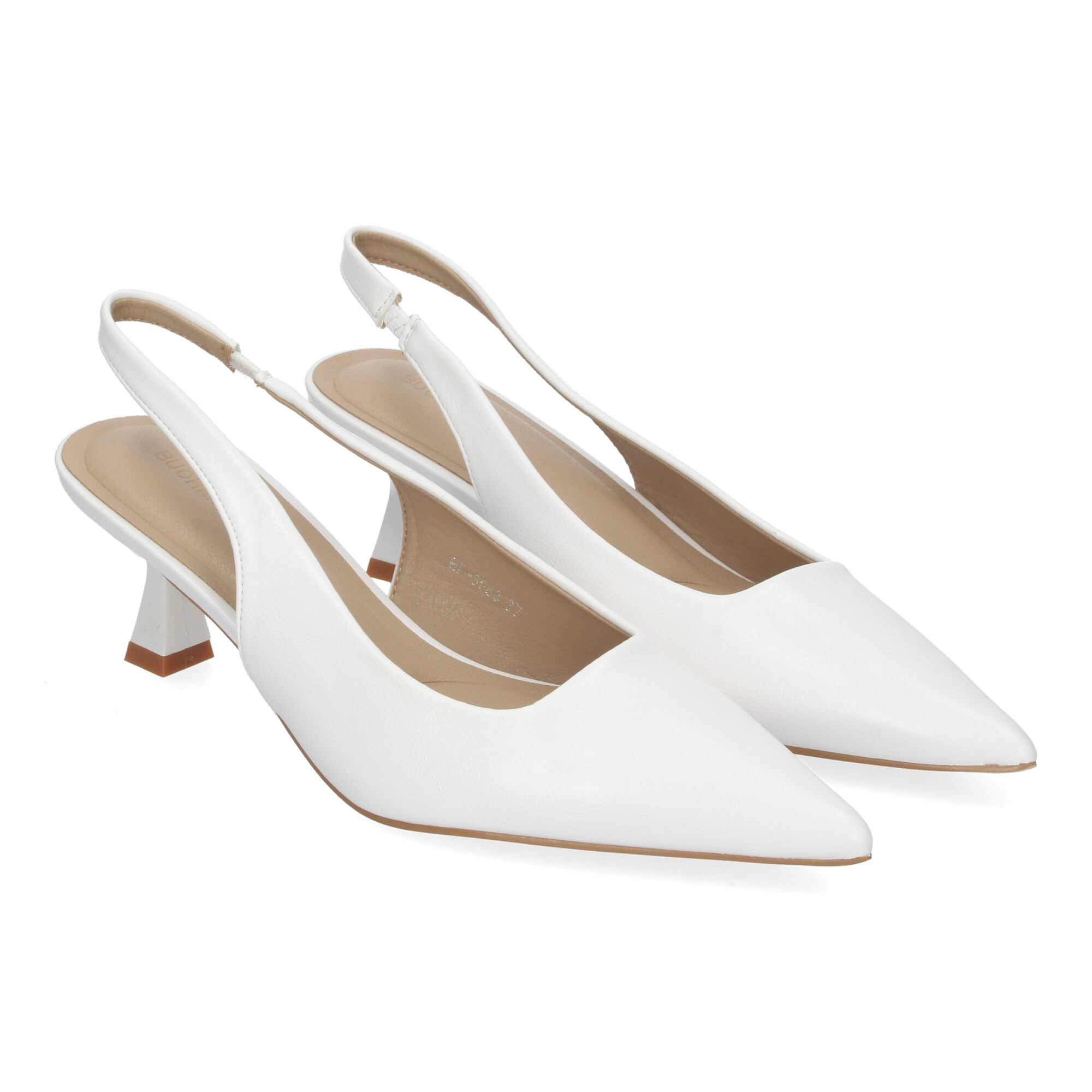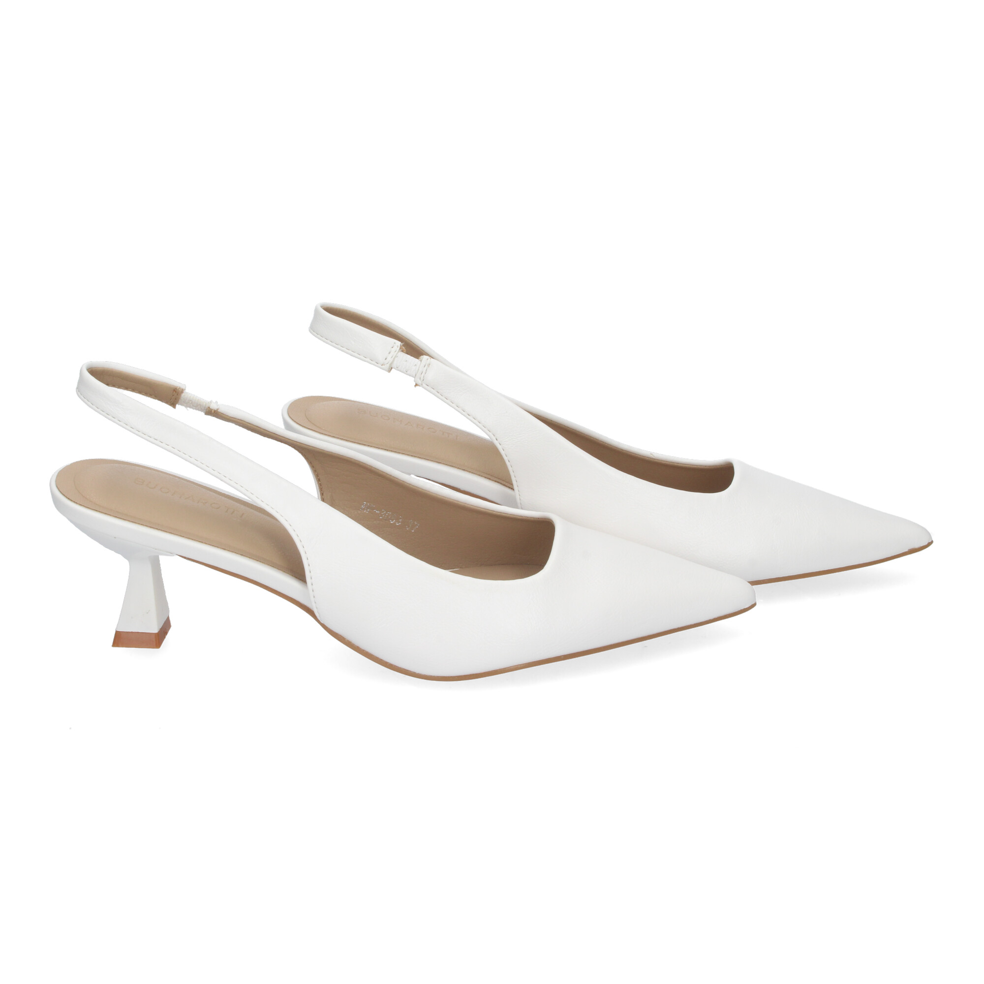 Zapato para Mujer Estilo Salón con Tacón con Puntera Fina talon abierto y Hebilla Ajustable.